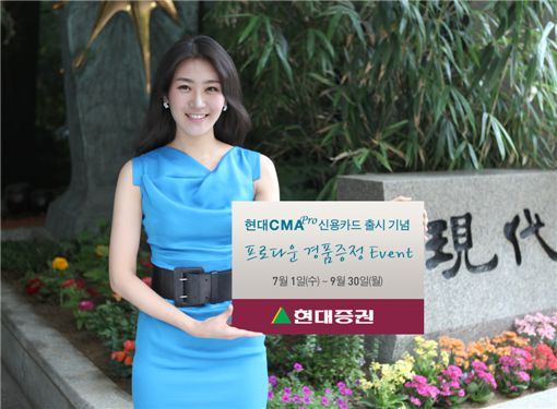 현대증권(대표 최경수)은 7월1일부터 '현대CMApro 신용카드' 출시를 기념해 신용카드 신청 및 사용 고객을 대상으로 푸짐한 경품을 제공하는 '프로다운 이벤트'를 실시한다고 30일 밝혔다.
