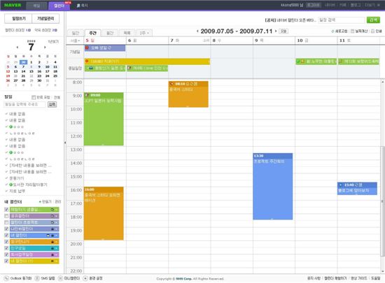 네이버 캘린더(http://calendar.naver.com)는 업무 미팅과 친목 모임, 기념일 등 일정을 등록해 놓으면, 무료 문자 메시지나 팝업창을 통해 이를 미리 알려주는 스케줄 매니저 기능을 제공한다.