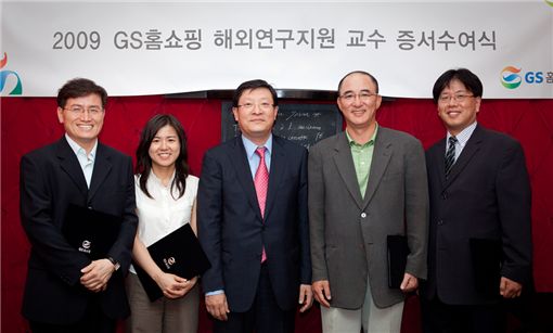 GS홈쇼핑은 30일 '해외연구교수 증서수여식'을 개최하고 해외연구교수로 선발된 최양수 연세대학교 정보대학원 교수를 비롯 4명에게 지원증서를 수여했다.