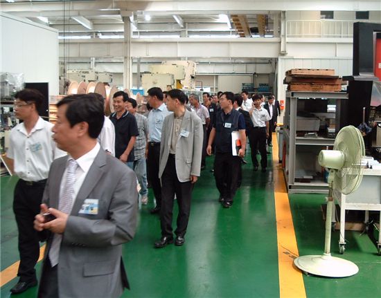 회사측은 생산라인 견학에 이어 7대 전략품목 안내, 시스템에어컨 제품 소개, 거꾸로 송풍 에어컨의 차별화 포인트 설명, 하반기 고효율 신제품 론칭 설명 등을 진행했다.