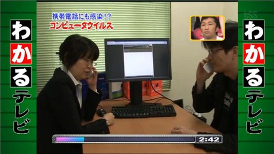 안철수연구소에 따르면 일본법인은 방송에서 휴대폰 바이러스 위협과 이를 방어할 수 있는 기술력을 선보였다. 휴대폰 바이러스가 사용자 모르게 주소록에 등록된 사람들에게 문자 메시지를 보내거나 개인정보를 빼내기도 하며, 심지어는 도청까지 가능하다는 점을 경고한 것. 아울러 안철수연구소를 비롯한 보안 업체들이 모바일 백신을 개발해 해커의 위협에 대비하고 있다고 소개했다.