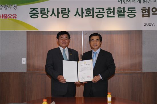 구는 1일 오전 11시 상봉동에 소재하고 있는 서울우유협동조합 본사 소회의실에서 서울우유조합장과 임·직원 등이 참석한 가운데 체계적인 자원봉사활동을 위한 중랑사랑사회공헌활동 협약식을 가졌다.