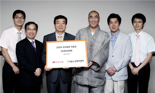 기부금은 노인들의 재사회화 교육 프로그램인 인문학 아카데미를 위해 쓰일 예정이다. 이날 전달식에는 서울노인복지센터 대표인 가섭 스님과 동서식품 김학수 부사장이 참석했다.