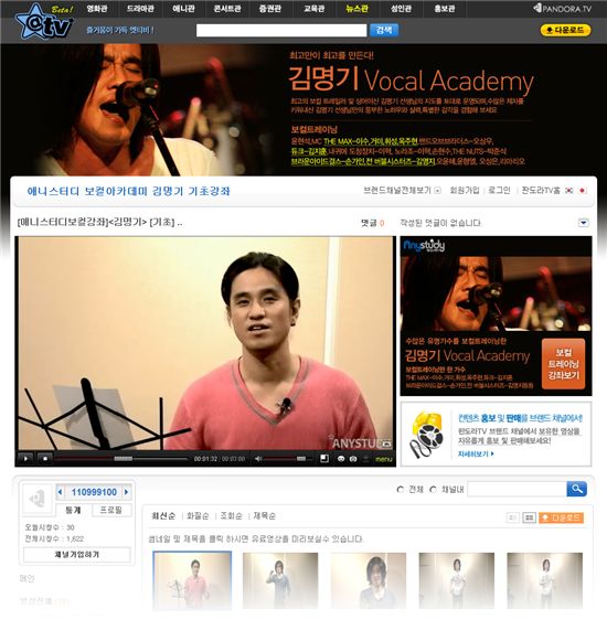 판도라TV는 엣티비에 신규 입점한 '애니스터디 보컬아카데미 김명기 기초강좌(http://brand.pandora.tv/my.anystudy01)'의 채널을 개설하고 톱 가수들의 보컬 트레이너를 맡았던 김명기씨의 보컬 강좌 동영상을 주면형비디오(VOD)로 서비스한다.