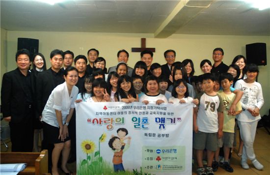 이를 위해 이날 박상권 우리은행 노조위원장을 비롯한 우리은행 관계자 들이 강북구 번동에 소재하는 독립문 지역아동센터를 방문해 ‘사랑의 일촌 맺기’ 현판 전달식을 가졌다.