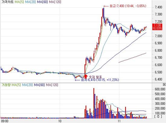 이날 코오롱아이넷과 녹십자 등도 호재성 소식이 전해졌다. 이들 종목 역시 주가가 호재에 반응하며 소폭 상승세를 유지했다.