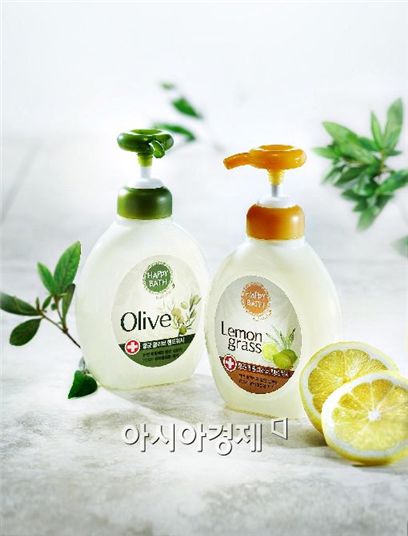 레몬그라스 허브의 산뜻한 향이 특징인 해피바스 ‘항균 레몬그라스 핸드워시’ (250ml·4400원대)는 상쾌한 향과 함께 손에 밴 냄새를 깔끔하게 커버하는 제품이다.