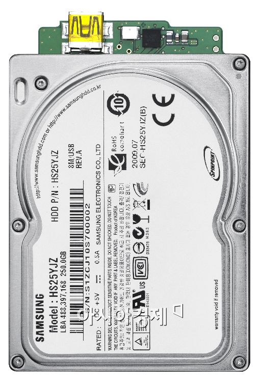 기본 사양은 ▲용량 120/160/200/250GB, ▲회전속도 3600rpm, ▲인터페이스 USB 2.0 ▲캐시메모리 8MB다.