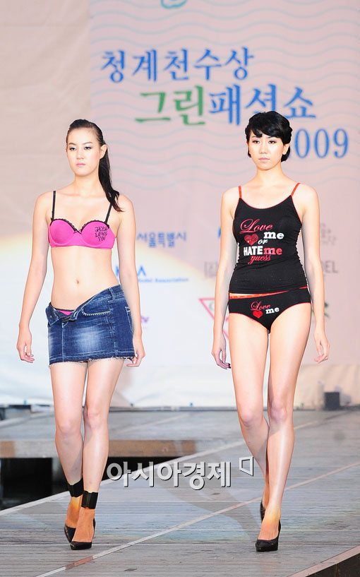 게스 언더웨어 패션쇼가 11일 오후 서울 청계천 오간수교 수변무대에서 열렸다. 모델들이 스타일리쉬한 언더웨어를 선보이고 있다.