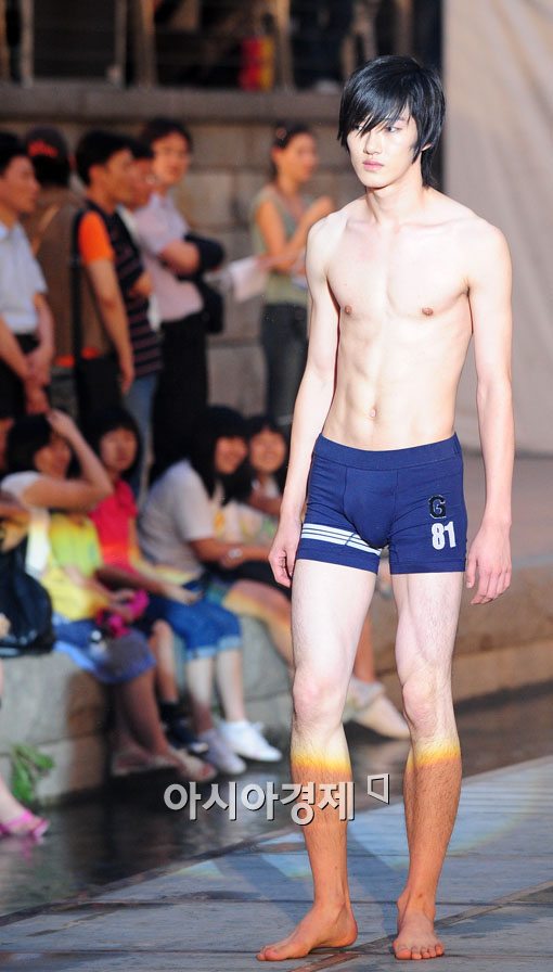 게스 언더웨어 패션쇼가 11일 오후 서울 청계천 오간수교 수변무대에서 열렸다. 모델들이 스타일리쉬한 언더웨어를 선보이고 있다.