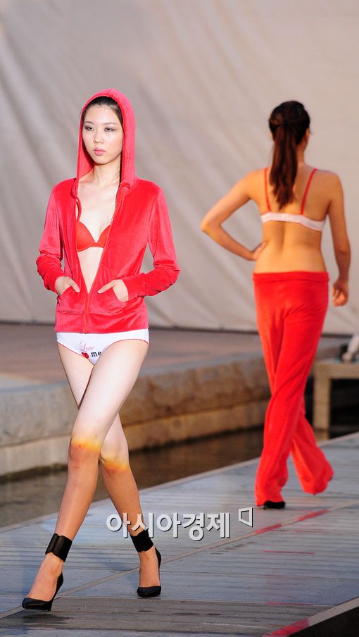 게스 언더웨어 패션쇼가 11일 오후 서울 청계천 오간수교 수변무대에서 열렸다. 모델들이 스타일리쉬한 언더웨어를 선보이고 있다.