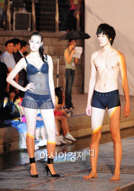 게스 언더웨어 패션쇼가 11일 오후 서울 청계천 오간수교 수변무대에서 열렸다. 모델들이 스타일리쉬한 언더웨어를 선보이고 있다.