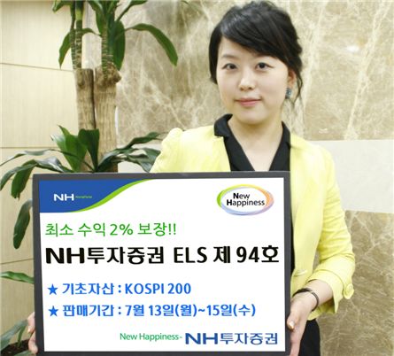 NH투자증권(대표이사 정회동)은 13~15일 최소수익 2% 보장형 파생결합증권(ELS)을 판매한다.