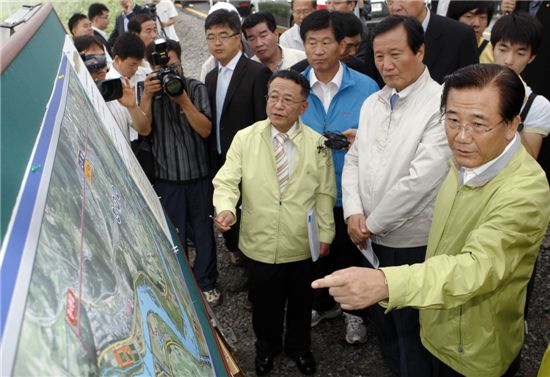 이에 앞서 윤 장관은 이날 오전 광주 서구 한 음식점에서 지역언론인들과 간담회를 갖고 "4대강 살리기에 대해 광주ㆍ전남지역 환경단체들의 반대가 가장 심하다고 해 영산강을 가장 먼저 찾았다"며 "재해대책비 4조3000억원, 4대강 유역 관리비 1조8000억원 등 관련 예산을 감안하면 4대강 살리기 사업이 오히려 예산을 절감하고 국가적 책무를 다하는 것"이라고 강조했다.