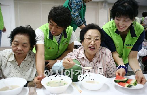 현대홈쇼핑은 16일 서울 강동구 천호3동 주민센터에서 열린 '희망의 우리밥상나누기' 행사를 후원하고 임직원 20여명이 자원봉사자로 참여, 무의탁 노인들을 위한 점심식사를 무료로 제공했다.