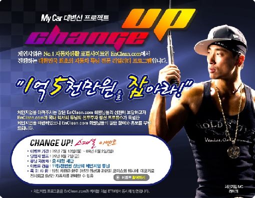 이벤트에 참여하고 싶은 고객은 다음달 2일까지 엔크린닷컴(www.enclean.com) 체인지업 코너의 사연광장을 통해 자신의 차량에 대한 설명과 사진을 첨부해 응모할 수 있다.