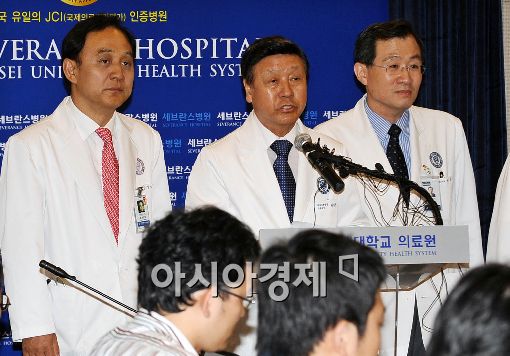 박창일 세브란스병원장이 16일 서울 세브란스병원에서 긴급 기자회견을 열고 폐렴으로 입원해 치료받는 김대중 전 대통령의 상태를 브리핑하고 있다.