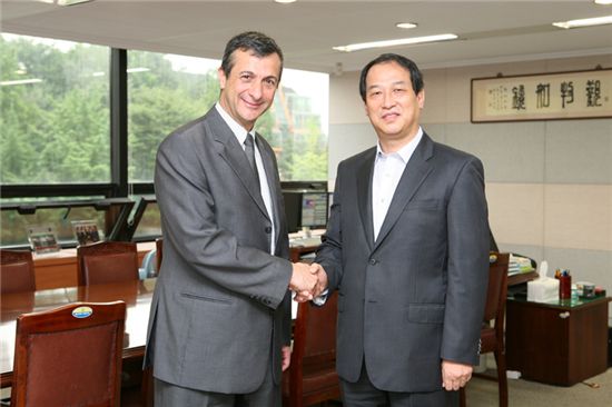 권태균 조달청장(사진 오른쪽)은 17일 서울지방조달청에서 폴 부아데스(Paul Buades) UN조달본부장을 만나 한국기업의 UN 조달시장 진출 확대를 촉구했다.