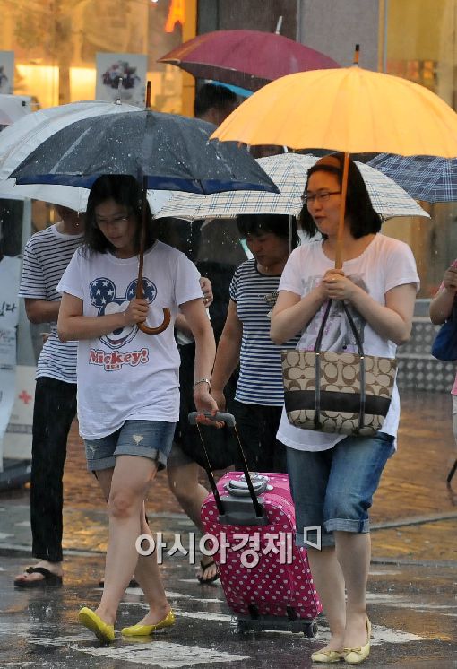 중부지역에 국지성 호우가 쏟아지는 가운데 17일 오후 서울 은평구에 세찬 비가 내리고 있다.