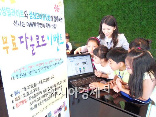 삼성전자는 20일부터 내달 22일까지 삼성딜라이트를 방문하는 모든 초,중,고등학생과 대학생들에게 휴대폰용 모바일 게임, 벨소리, 배경화면, 폰트(글자체) 등 삼성모바일닷컴의 애니콜 컨텐츠를 무료로 제공한다.