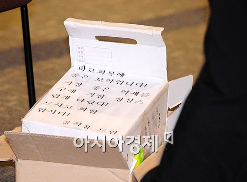 미디어법 등 쟁점법안을 놓고 여야가 동시에 국회 본회의장을 점거하는등 첨예한 대립을 이어가고 있는 20일 오전 국회 본회의장에 피로회복제 빈 박스가 놓여 있다.