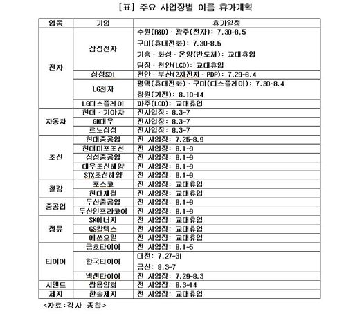 주요 대기업 사업장이 이달 말부터 본격적인 여름 휴가에 돌입한다.