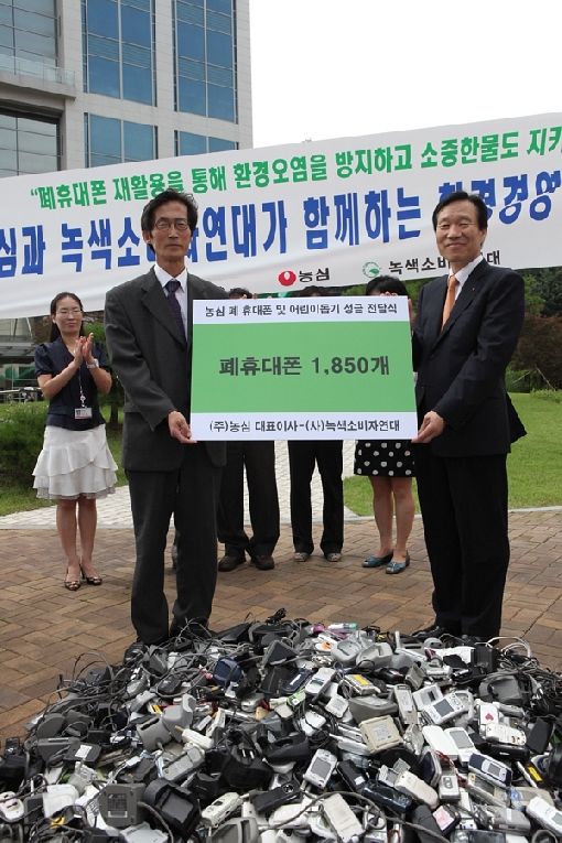 또 농심은 이날 본사 앞 새싹공원에서 수거된 1850개의 폐휴대폰을 녹색소비자연대에 전달하고, 캠페인 참여자들에게 1850박스의 삼다수를 증정했다.