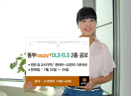 동부증권은 22~24일 원금 100%보장형 ‘동부 happy+ 파생결합증권(DLS) 제3회’와 스텝다운형 ‘동부 happy+ 파생결합증권(ELS) 제114회’를 판매한다고 22일 밝혔다.