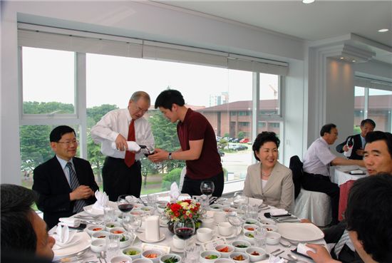 지난해 2월 박근혜 전 한나라당 대표가 KAIST에서 명예박사를 받았을 때도 그랬다. 박 전 대표가 “포도주 맛이 아주 좋습니다”라고 하자 서 총장은 “대단히 싸고 좋은 와인입니다”라고 답했다.