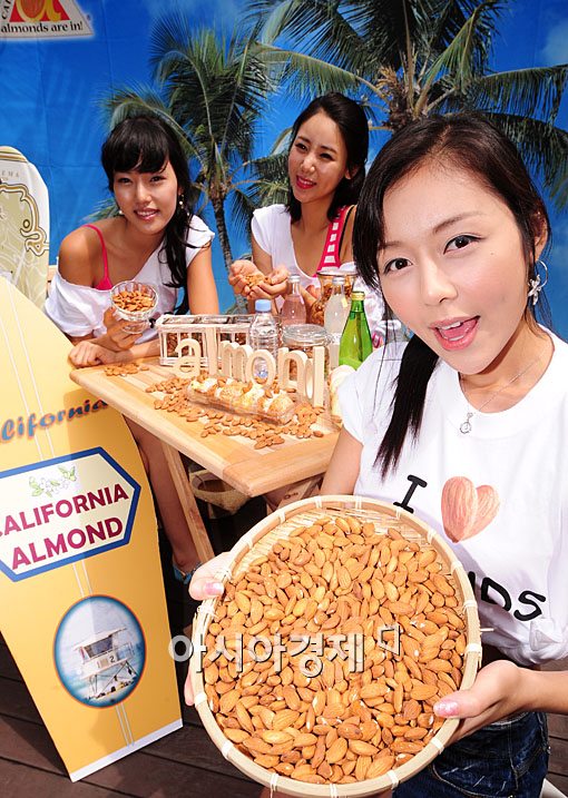 26일 서울 충무로 신세계 백화점 본점에서 모델들이 캘리포니아 아몬드를 선보이고 있다.