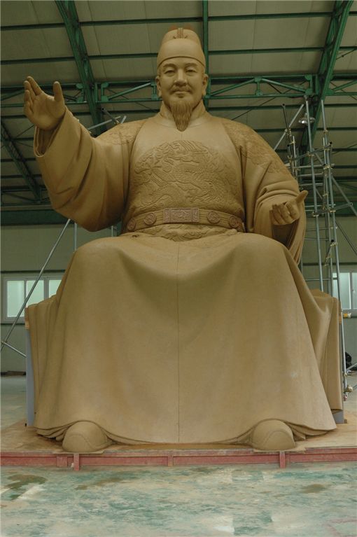 세종대왕 동상은 지난 15일 경기도 광주 현장에서 개최한 1차 동상ㆍ영정심의회에서 심사위원들로부터 얼굴 부분 이마와 턱, 수염부분 일부 조정과 옷고름, 소매부분 맵시의 수정 및 신발의 바느질 선 추가 등 일부 경미한 보완 사항이 지적됐고 지난 일주일간 수정 보완을 마쳤다.