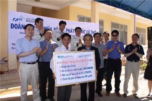 또한 중앙대의료원은 지난 5월 베트남 꽝웅아이성과 ‘안면기형환자 무료 시술을 위한 양해각서’를 체결한 이후 의료원 직원들이 십시일반으로 모은 7000 달러를 인근 중학교 2곳에 컴퓨터, 책걸상 구입비 등으로 써달라며 기증했다.