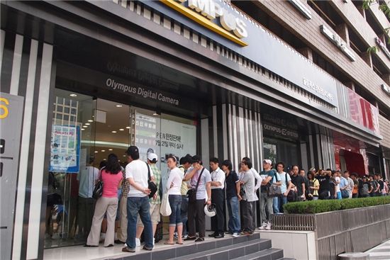 27일 이른 새벽부터 PEN을 구매하기 위해 지방에서 올라온 소비자들과 외국인들을 포함한 150여명의 구매자들이 강남점, 코엑스점 등 각 매장마다 줄을 섰다.