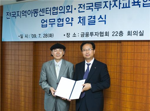 전국투자자교육협의회는 전국지역아동센터협의회와 청소년의 금융이해력 향상과 올바른 금융관 정립을 위해 상호 협력하는 업무협약(MOU)을 금융투자협회에서 체결했다고 28일 밝혔다.