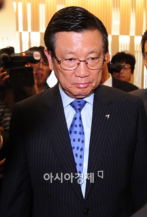 박삼구 금호아시아나 그룹 회장이 28일 오후 서울 신문로 금호아시아나 본사에서 '총수 일가 동반 퇴진' 긴급 기자회견 마친후 심각한 표정으로 회견장을 나서고 있다./윤동주기자 doso7@