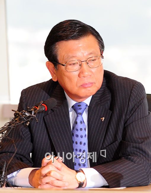 박삼구 금호아시아나 그룹 회장이 28일 오후 서울 신문로 금호아시아나 본사에서 '총수 일가 동반 퇴진' 긴급 기자회견을 갖는 도중 심각한 표정을 짓고 있다.