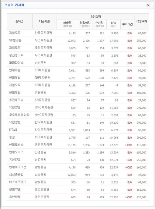 우리투자증권은 29일 제일모직에 대해 케미칼 부문의 수익성 개선에 힘입어 기대 이상의 2분기 실적을 내 놓았다며 목표주가를 기존 5만5000원에서 6만원으로 상향 조정했다.