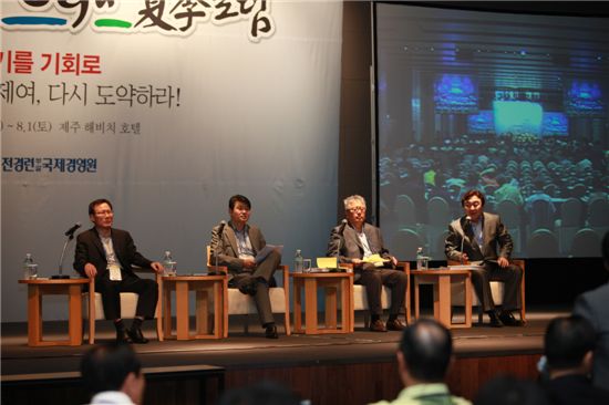 30일 서귀포 해비치리조트에서 열린 전국경제인연합회 주최 하계포럼 '주요 산업/기업별 생존전략 대토론회'에 나선 패널들은 실물경제 침체 장기화 가능성으로 기업인들이 위축되어 있지만, 지금이 또 한번의 도약을 할 수 있는 절호의 기회인 만큼 효과적인 대응책 마련을 서둘러야 한다는 데 동의했다.