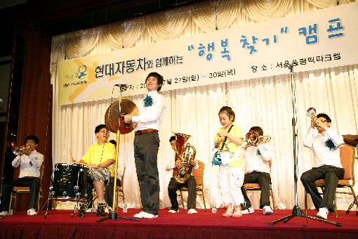 $pos="C";$title="현대차";$txt="현대자동차가 지난 27일부터 개최한 행복찾기 캠프에서 열린 퍼니밴드의 음악회 공연 모습 ";$size="510,340,0";$no="200907301112539258986A_1.jpg";@include $libDir . "/image_check.php";?>현대자동차(회장 정몽구)가 지난 27일부터 4일간 교통사고 유자녀 100명을 초청해 명사강연, 공연관람, 자동차연구소 견학 등 다양한 체험활동으로 구성된 '세잎클로버 행복찾기 캠프'를 가졌다.