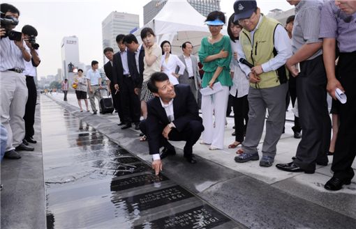 역사물길 617개 돌판에는 건국이래 우리 역사가 새겨져 있다. 광화문광장은 8월1일 정식 개장한다. 사진제공/서울시