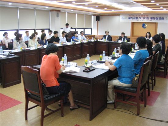 예산집행 모니터단은 29일 구청 3층 기획상황실에서 박의식 감사담당관 주재 아래 모니터단 구성 취지, 운영방향, 대상사업과 모니터 요령에 대한 설명과 의견수렴을 갖는 활동설명회를 가져 실질적인 모니터 활동에 대한 준비를 마쳤다.