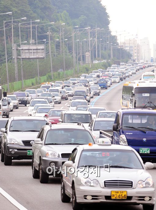 경부고속도로 양재IC 부근이 늘어난 차량으로 극심한 정체를 빚고 있다.