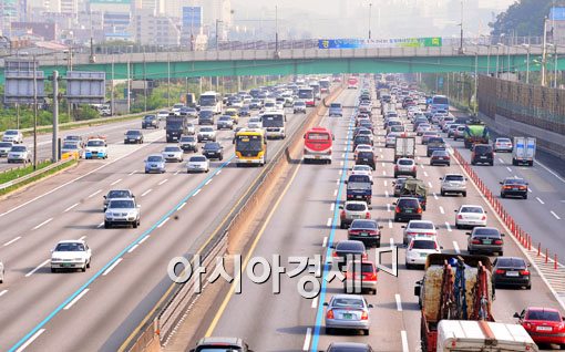 경부고속도로 부산방향 신갈분기점 부근이 차량들이 제 속도를 내지 못하고 있다.