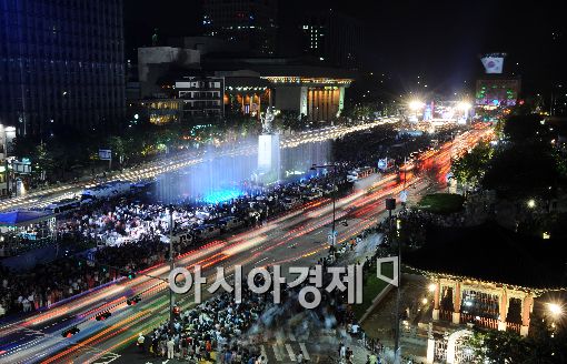 1년 2개월여의 공사를 마친 광화문광장이 모습을 드러냈다. 1일 저녁 서울 광화문광장에서 광장 준공을 기념하는 '광화문광장 새빛들이' 행사를 찾은 많은 시민들이 행사를 즐기고 있다.