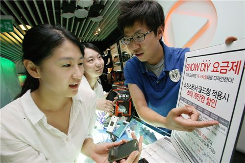 DIY 요금제는 기본료가 표준요금제보다 1000원이 싼 1만1000원(음성 19원, 영상 30원/10초당)이다. △무료음성통화 5종 △무료영상통화 3종 △무료문자 7종 △음성통화할인 29종 △무선데이터옵션 2종 중 자신이 원하는 옵션을 선택해 직접 만들어 쓸 수 있다.