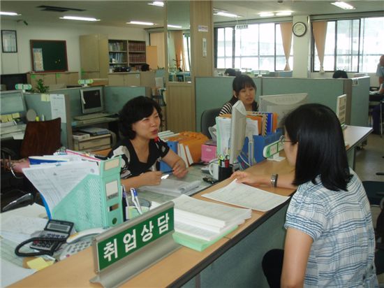 상담은 구 취업정보은행 상담원 3명과 동 주민센터 취업담당이 맡는다.