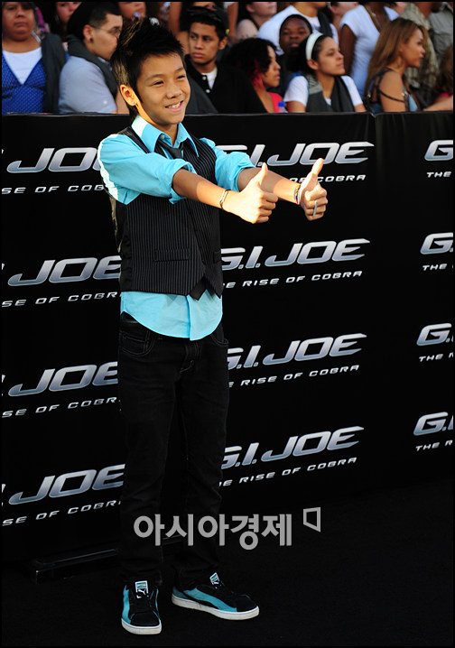 [아시아경제신문 로스엔젤레스(미국) = 박성기 기자]영화 속 이병헌 아역을 맡은 배우 브랜든 수 후(Brandon Soo Hoo)가 6일 오후 6시30분(현지 시각) 미국 캘리포니아 주 로스앤젤레스 할리우드 그라우맨스 차이니즈 극장에서 열린 영화 'G.I.Joe(지아이조)' LA 프리미어에서 포즈를 취하고 있다.