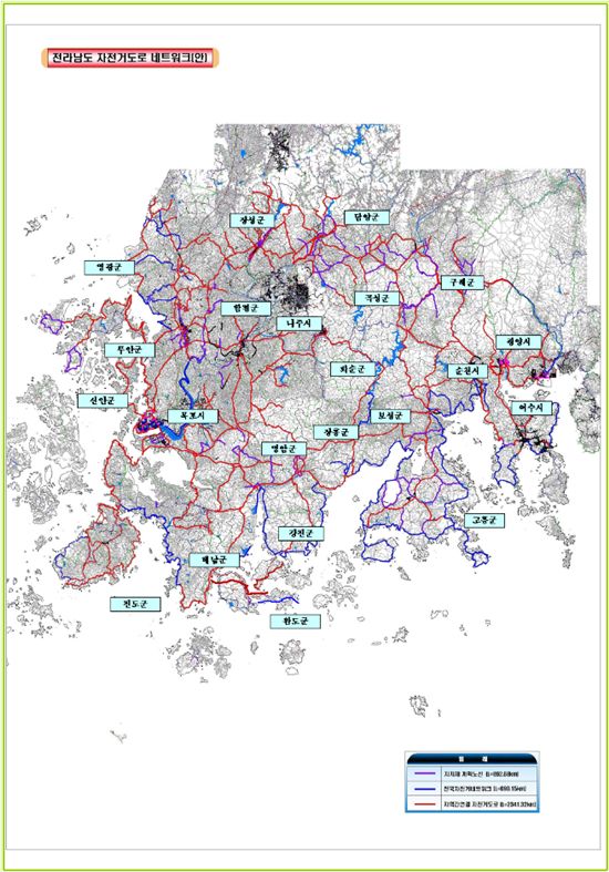 전남도는 11일 지난 7월 확정된 노선계획을 보면 244개 노선에 총 연장 2341㎞로 9336억원의 사업비가 투입될 예정이다.