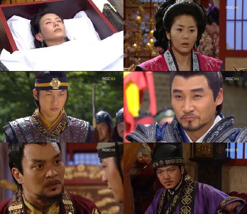 천명의 죽음을 전해들은 이들은 하나같이 놀라 입을 다물지 못했다. 진평왕(조민기 분)은 믿어지지 않는다며 흥분을 감추지 못했고, 황후는 소식을 듣자마자 정신을 잃고 만다.