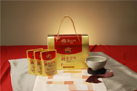 순홍삼액 100은 100% 홍삼만을 48시간 동안 추출한 후 원심분리기로 전분을 걸러낸 제품이다.